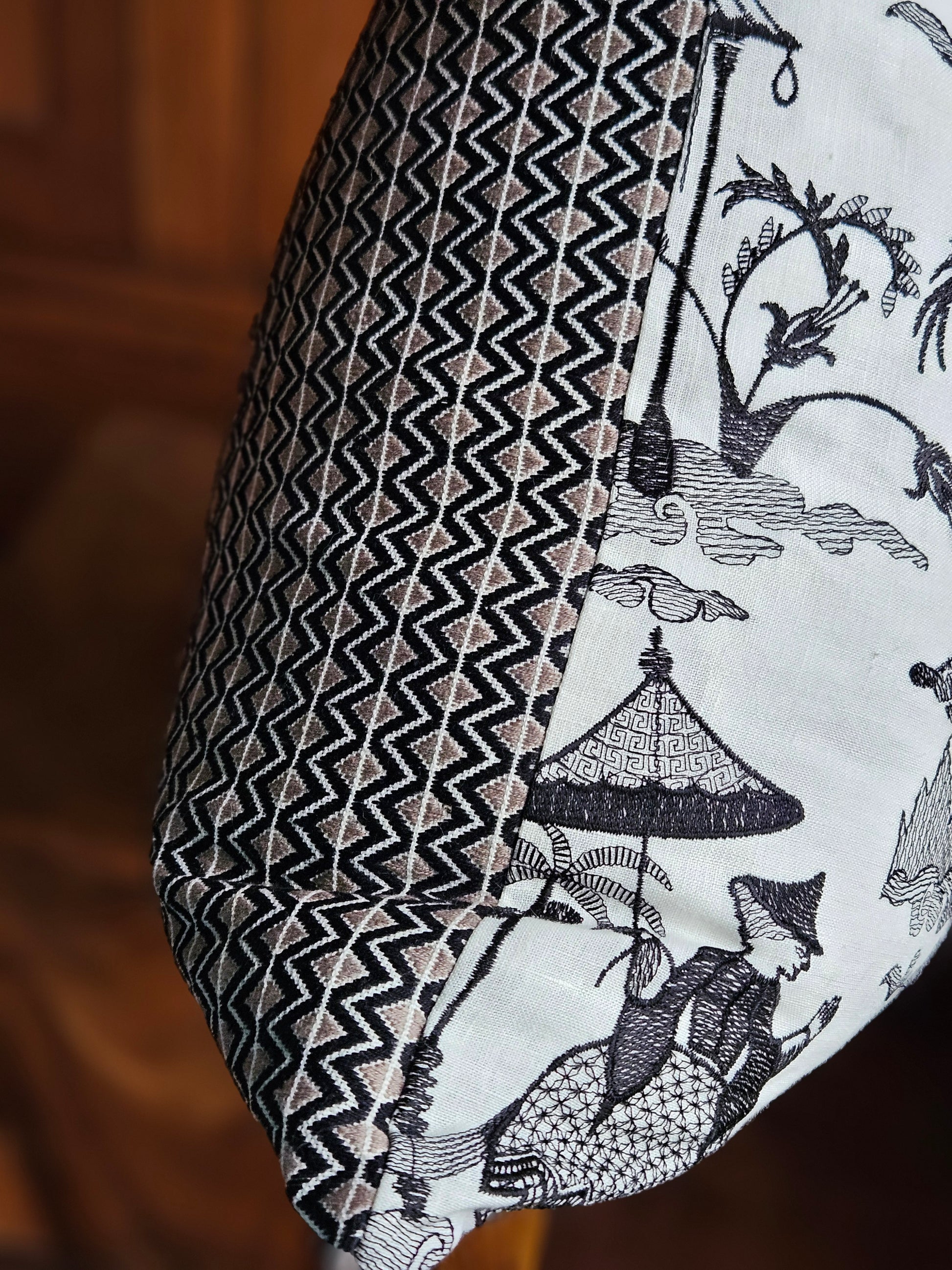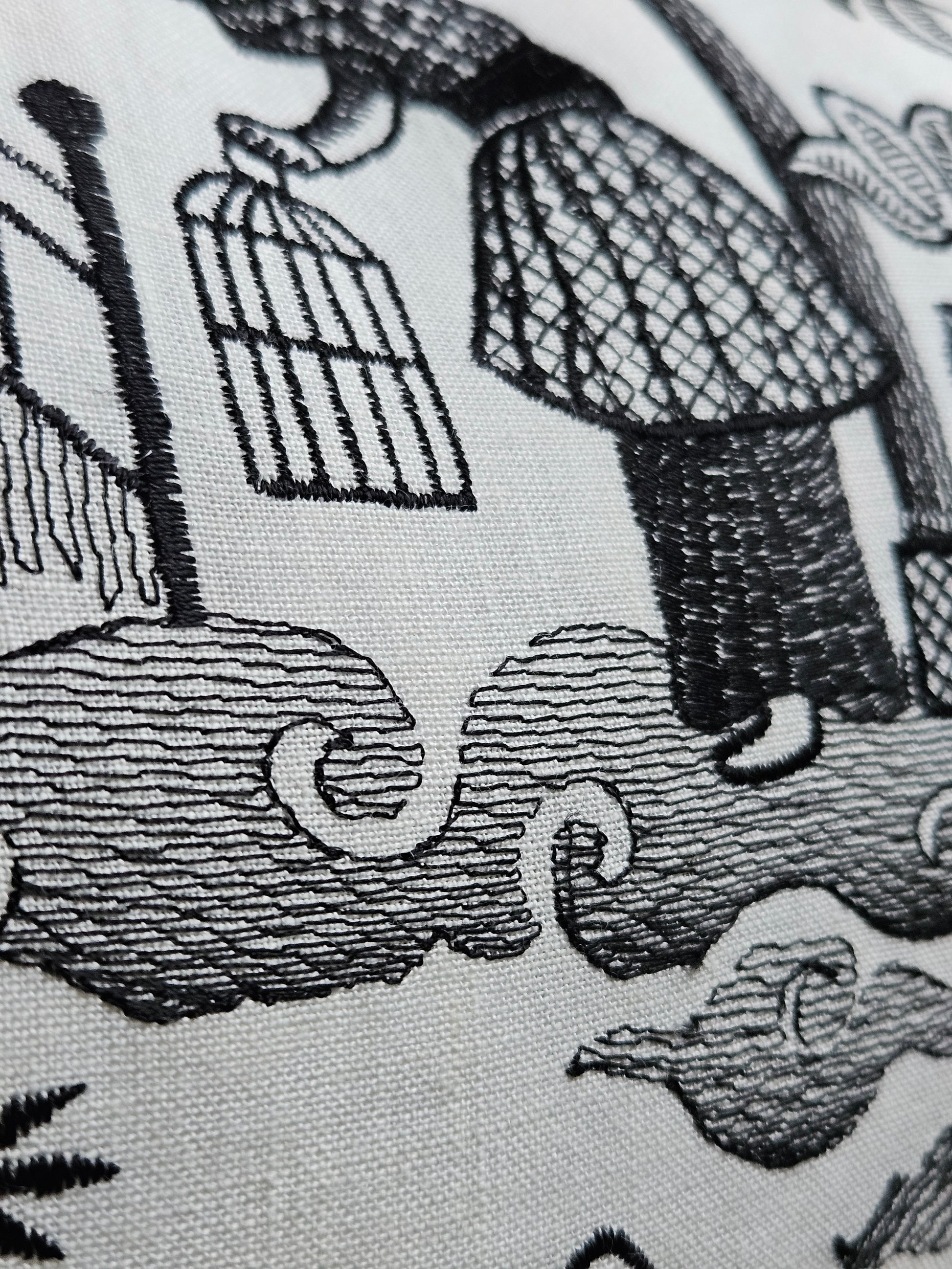 20'' x 20'', Linen, embroidery, zipper, synthetic goose down effect.