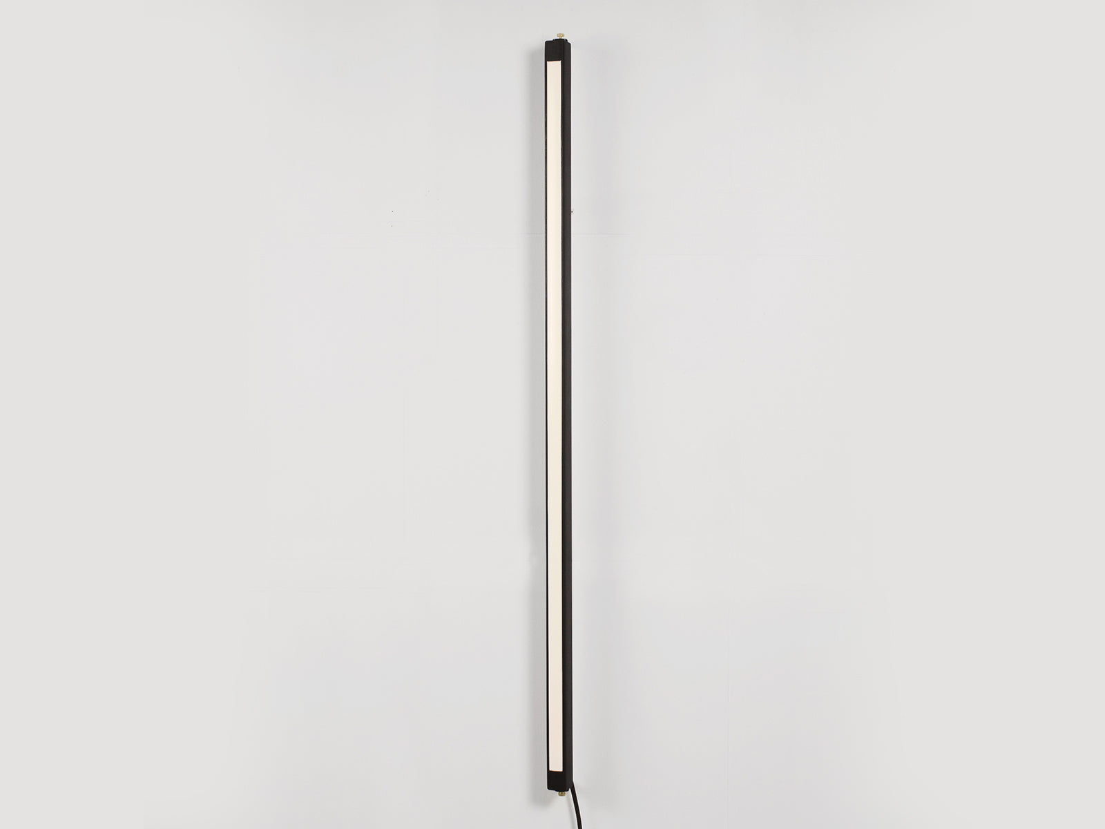 The body of the lamp is finished with a black water-based wood stain or with a water-based varnish for a more natural look. The powder-coated steel wall mount is available in black for the black lamp and in white for the natural wood lamp. Don’t hesitate to contact us for a custom color, stain or type of wood.