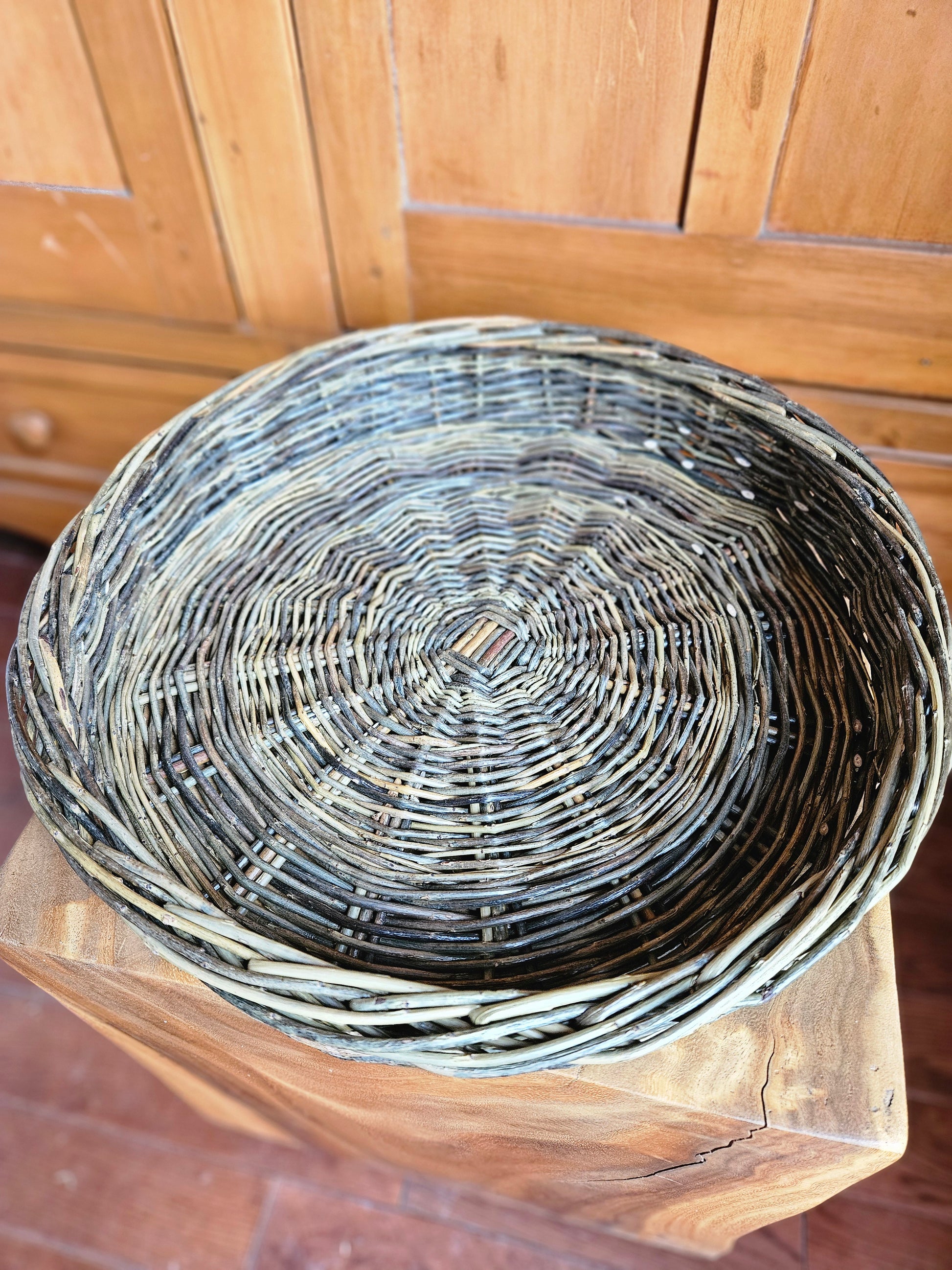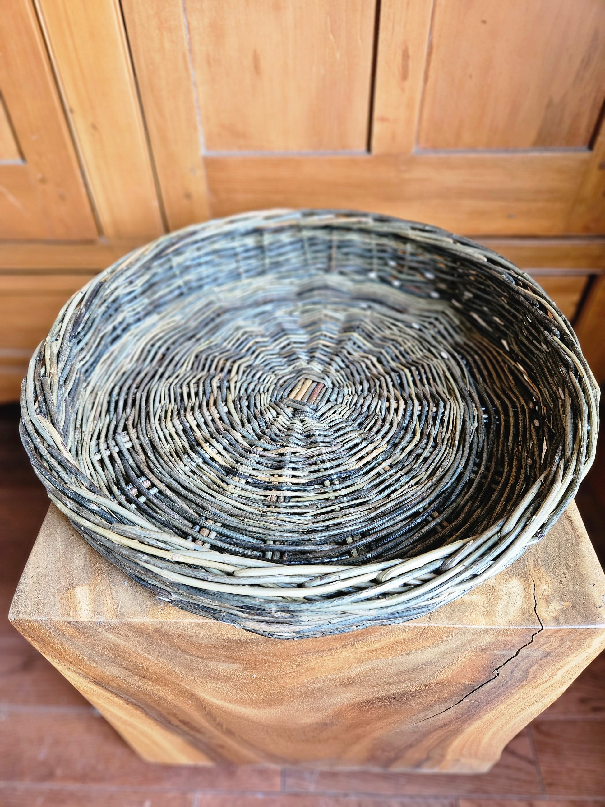 Please note: This available listing of the basket is unique. Additional orders of this peice may be commisioned, delay for production is 4-6 weeks. Item may vary in size and color, due to it's natural material and hand weaved process.