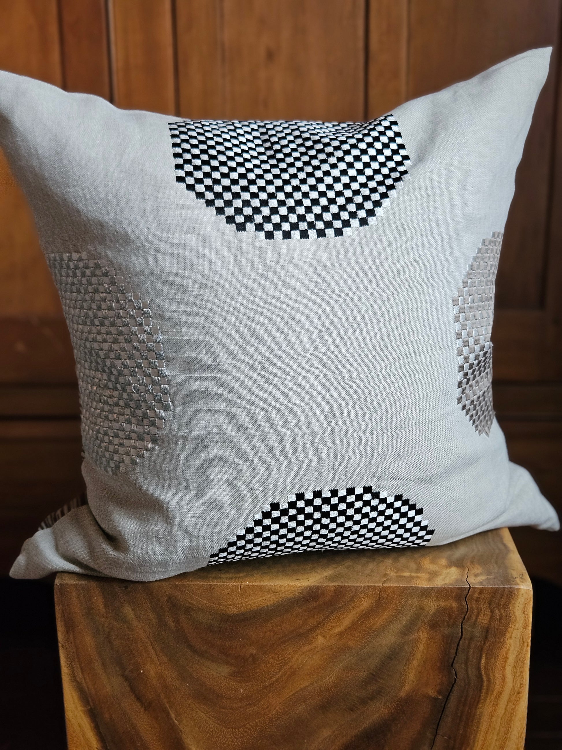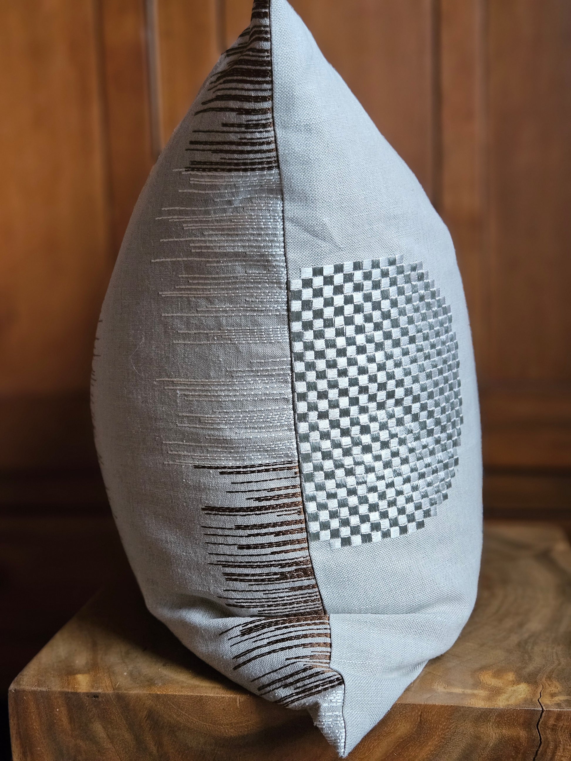 SET OF CHECKERS, STRIPES AND CHEVRON CUSHIONS