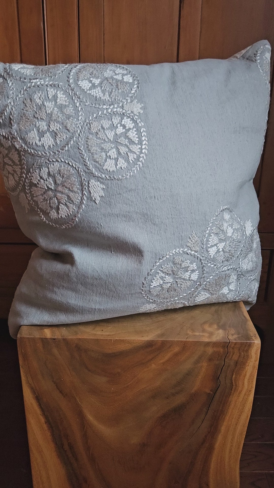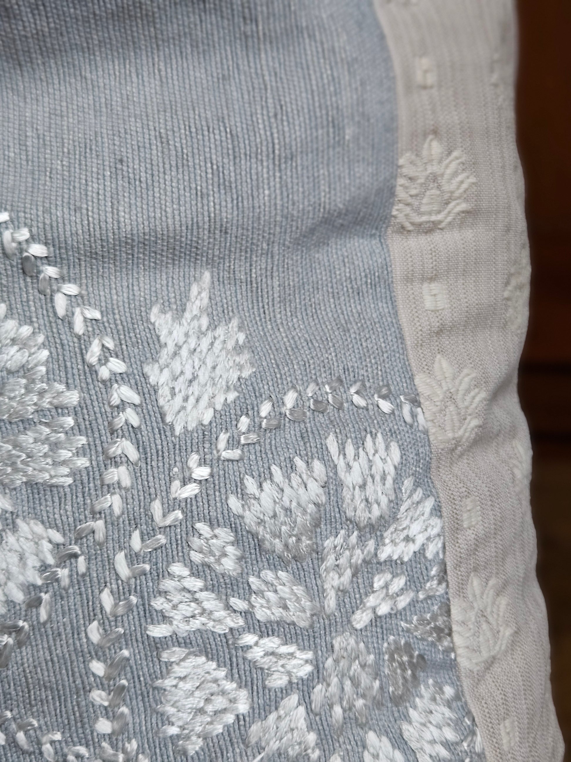 MATERIAL: Includes linen and embroidered stitching with a Zipper located at the bottom edge. SIZE: The dimensions of the pillow case are 21" x 21", and is displayed with a 22x22" feather insert. PLEASE NOTE: This listing is for the pillow cover alone, the insert is not included. CARE: To maintain, either spot clean or dry clean. CREATED BY HAND IN Sutton, Québec, Canada by our in-house artisans.