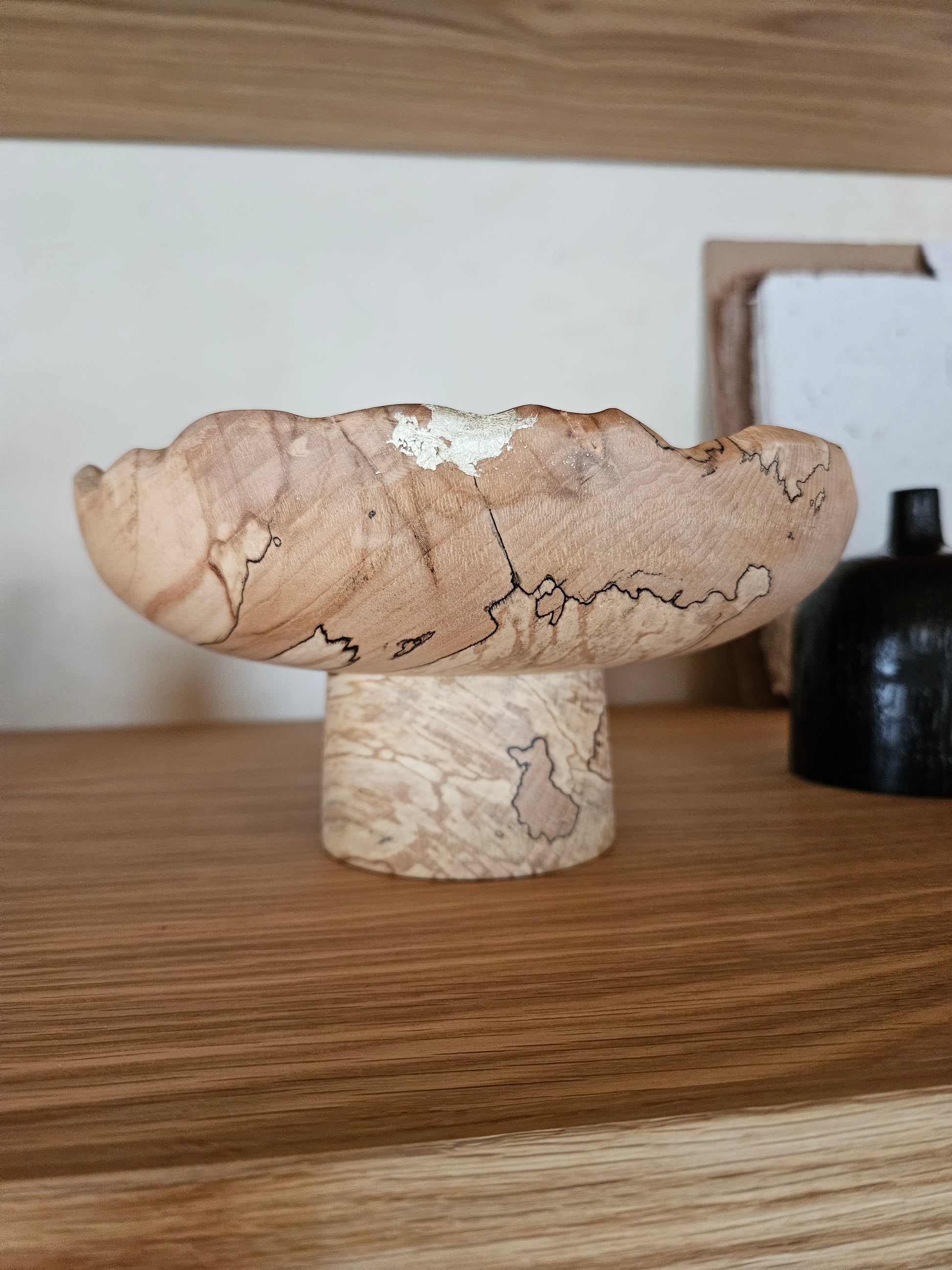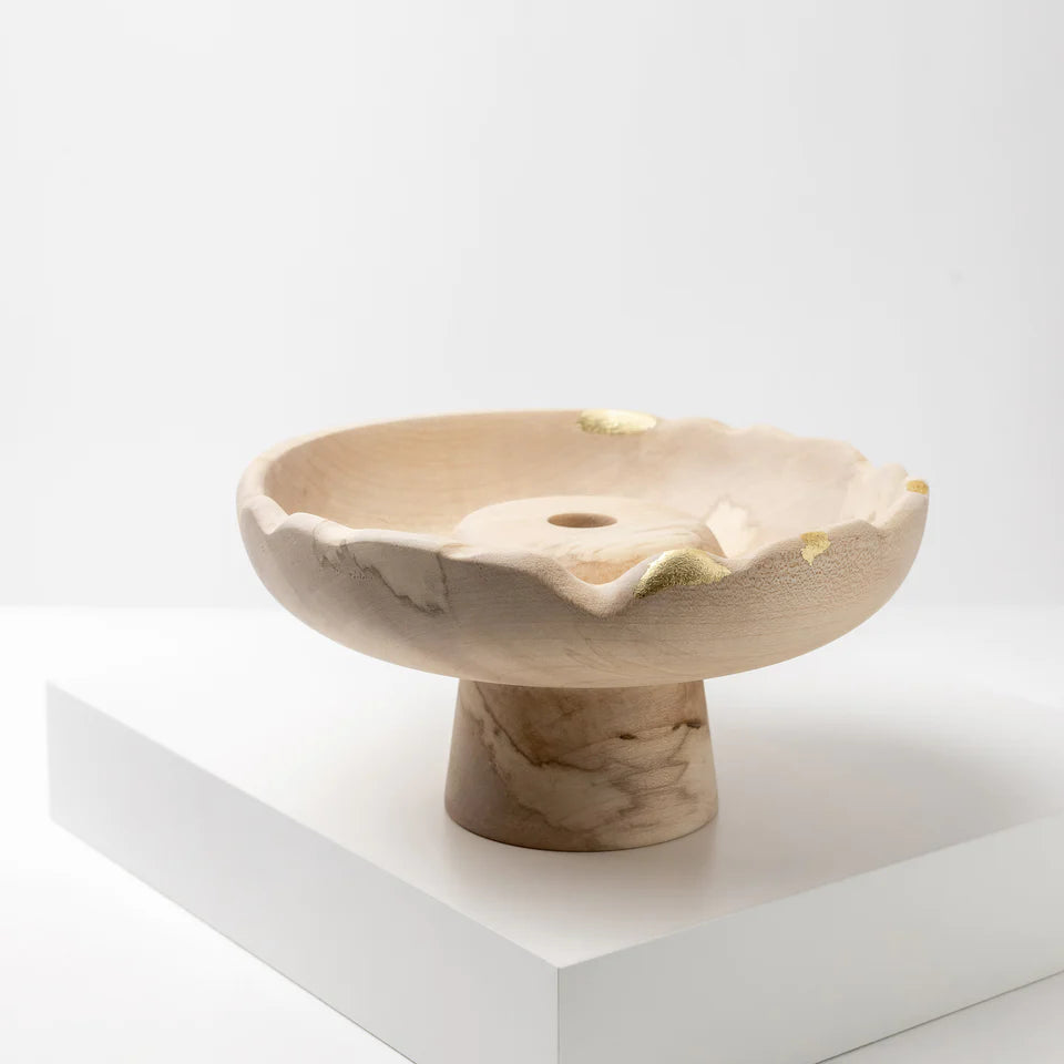 The fluid rims of the pieces encourage viewers to respond as if they are experiencing a piece of artwork, yet each is an invitation to use the piece as a modest object. The focus simultaneously remains both on the piece and the ambiance it creates. The pieces within ‘Not Whole, But Complete’ can enhance a space even when they are not in use, as their influence and feel are undoubtedly sculptural without sacrificing functionality.